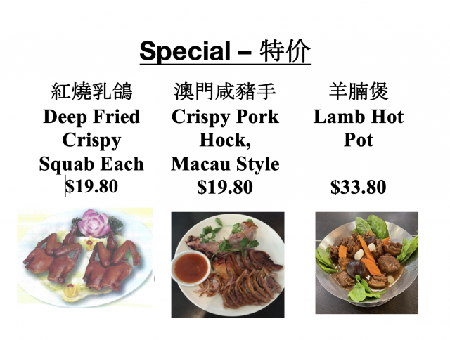 • 八珍扒鴨           *   House Special Eight Ingredients Duck